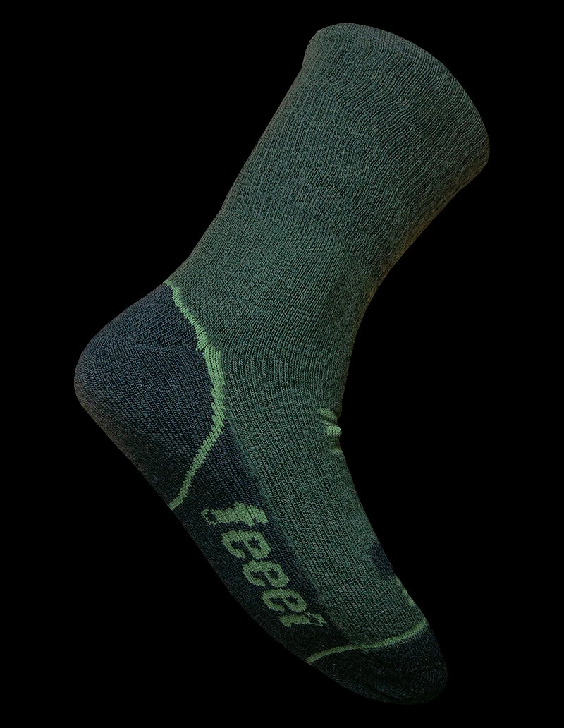 Feeet Merino Hiker Sock aims for ultra comfort and performance. Having the benefits of merino wool and the design and look of a great feeet sock this is the ultimate all weather walkers sock. Merinos natural properties will keep your feet warm whilst wicking away moisture so your feet stay dryer and sweat free. Stick this on your feeet and you can probably wear it for a couple of days at least. Great in the mountains but also at home walking the dog especially in the Winter.