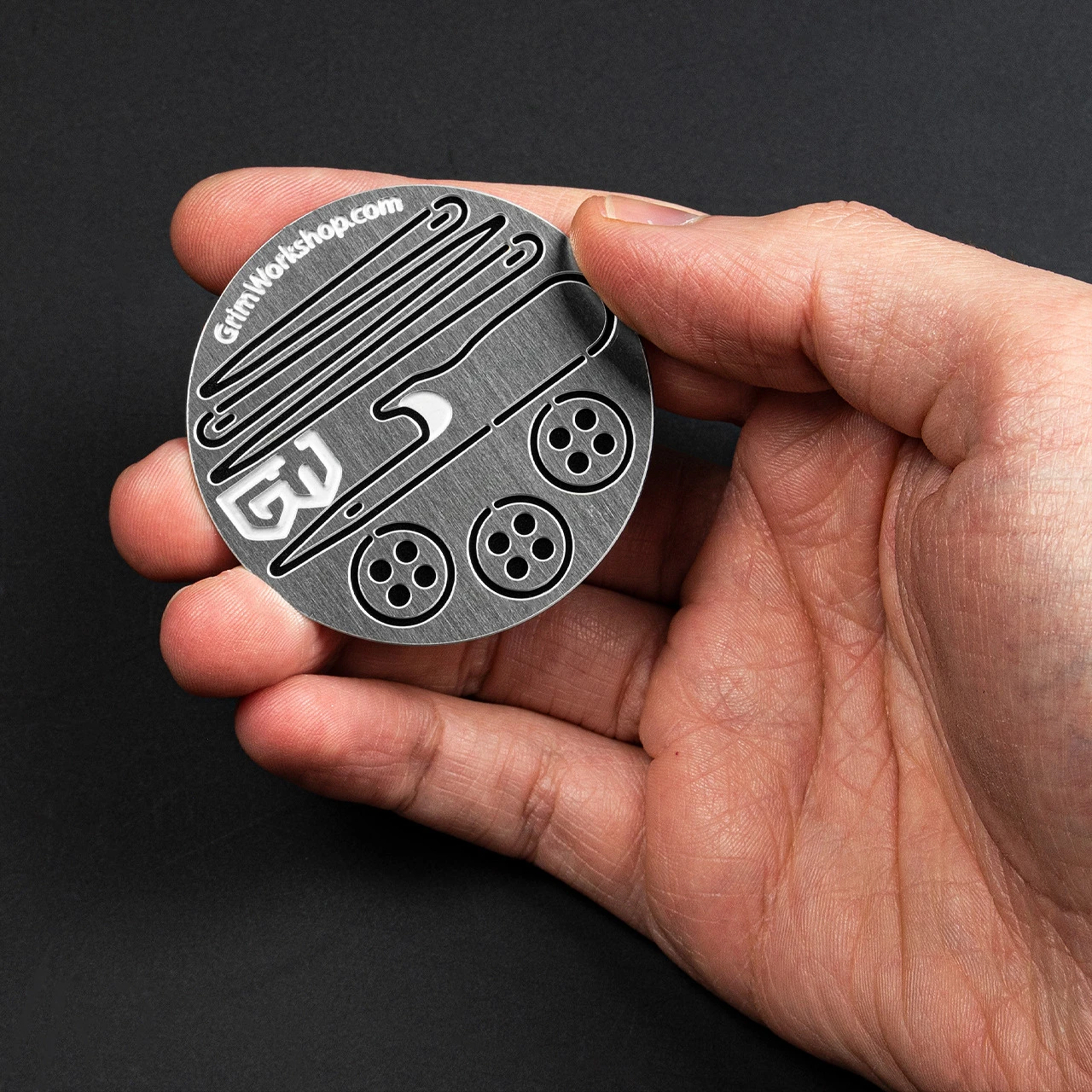 The Grim Workshop Roundabout Sewing and Repair Kit is a small coin-sized hand sewing kit. This little sewing kit is palm-sized, and just 1mm thick so it’s ultra-compact construction means it’s ready to go just about anywhere. Complete with a small awl, seam ripper, sewing needles, and buttons it’s pretty much got everything you need to perform basic repairs, as well as general sewing tasks. It’s the perfect survival kit accessory.