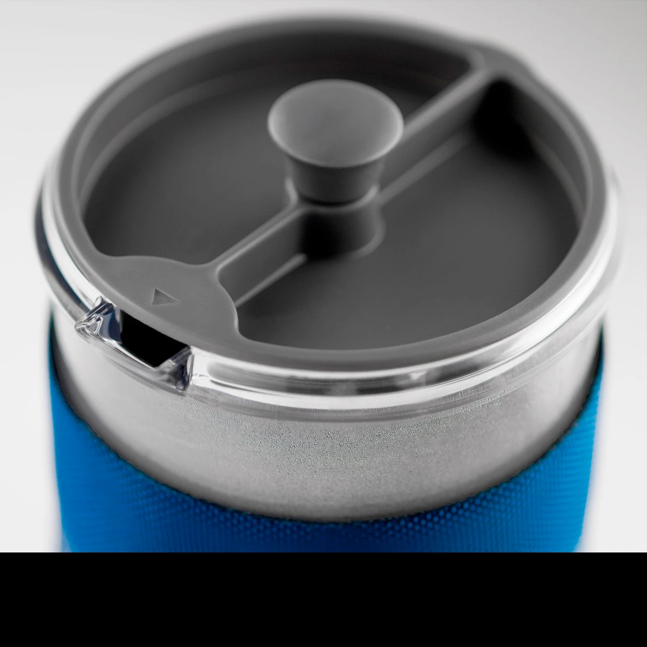 - Double-walled, insulated lid and ballistic nylon-wrapped cozy holds in temperature while brewing and serving.