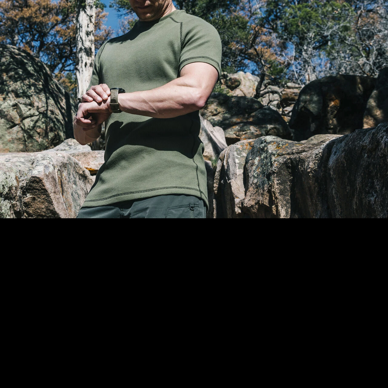 Classic waffle shirts have been staples of rugged attire from the frontier to the concrete jungle. Now available in a year-round long-staple cotton option in addition to wool blends, The Triple Aught Design Primer Cotton T is your reliable partner in casual performance.